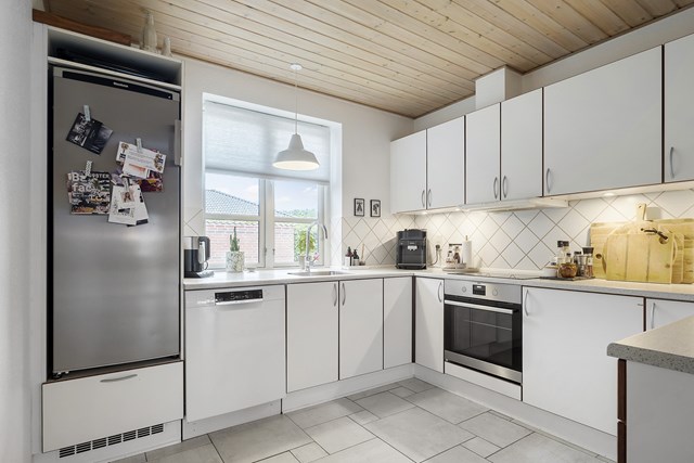 Bevæger du dig ind i det rummelige køkkenalrum, mødes du af et rum, hvor der er plads til at være sammen omkring madlavningen og lektielæsningen. Herfra er der udgang til en delvis overdækket terrasse. Endvidere har du en børneafdeling, der rummer tre gode værelser og et badeværelse. I denne afdeling er også bryggerset med vaskefaciliteter. Boligen er særdeles energivenlig med energimærke A2010.